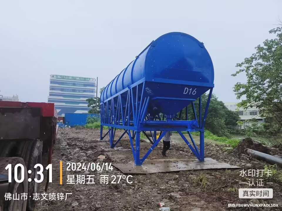臥式水泥倉(cāng)是有多個(gè)支腿、下部錐體、倉(cāng)體、上料管、爬梯、安全防爆閥組成,重力分散,只需要在臥式水泥罐下方進(jìn)行硬化即可放置使用,免除做基礎(chǔ)和預(yù)埋的麻煩,省時(shí)省力。